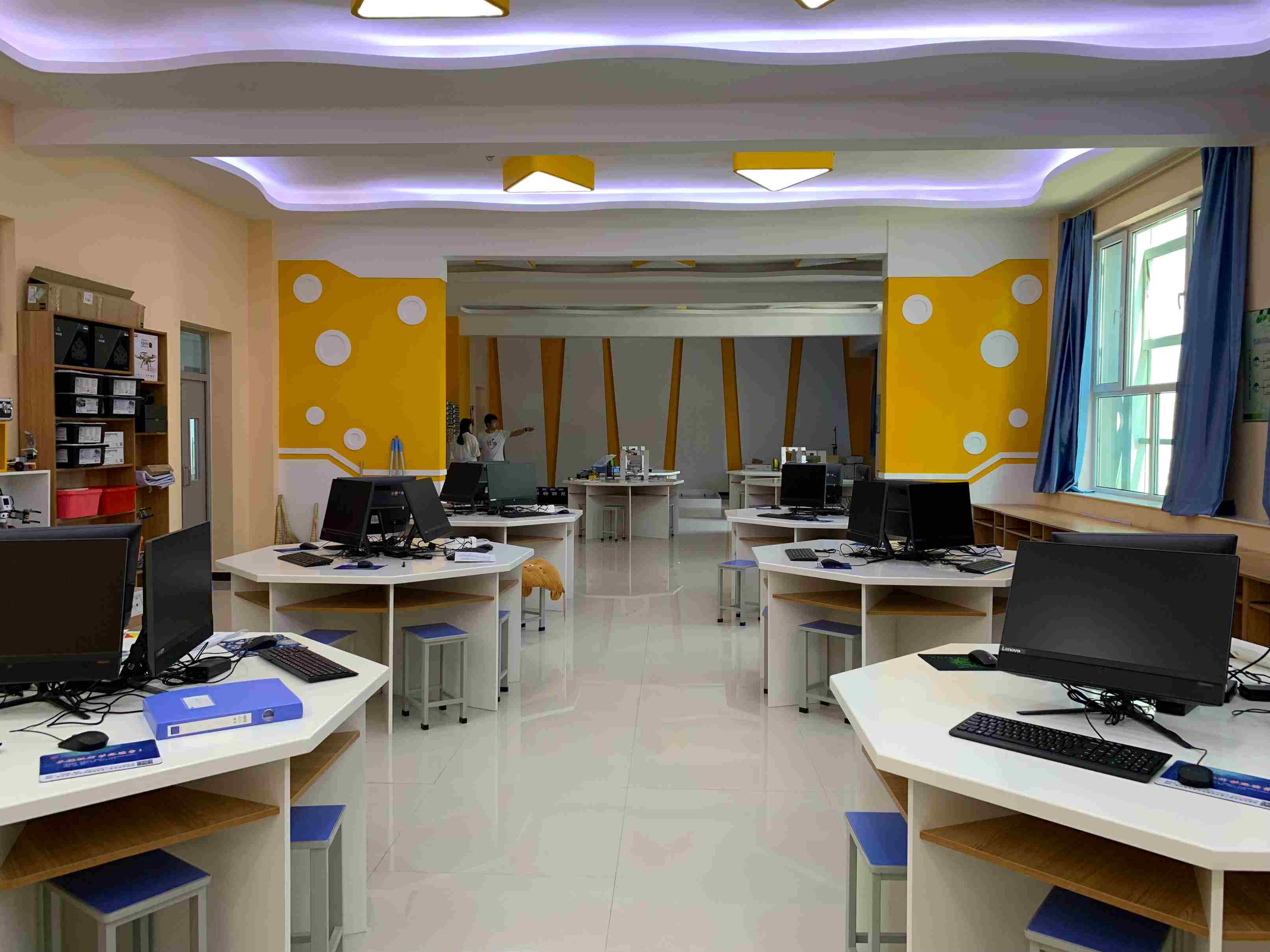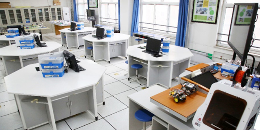 阿斑兔將機(jī)器人、創(chuàng)客、3D打印、航模等融為一體,研發(fā)、設(shè)計具有情景體驗、創(chuàng)意生成、原型制作、展示交流等多功能為一體的機(jī)器人教育教學(xué)場所,即創(chuàng)新教育實(shí)驗室,針對不同年齡段學(xué)生的特點(diǎn)、學(xué)校學(xué)情等,為其提供足夠的空間、設(shè)備和完善的課程體系。